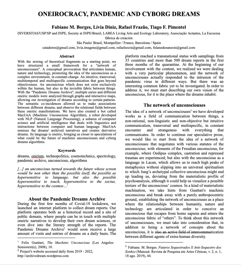 Article Oneirocracy, Pandemic and Cyborg Dreams published by N-1, MIDBO and ISEA